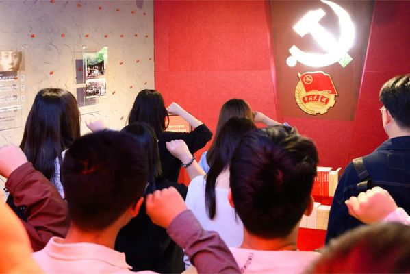 临近五四青年节,在完成参观后,学习社成员重回小红梅信仰空间,重温入团誓词,进一步增强了青年学子的使命感和责任感。入团宣誓由老师领誓,所有共青团员庄严宣读誓词,重温入团初心。