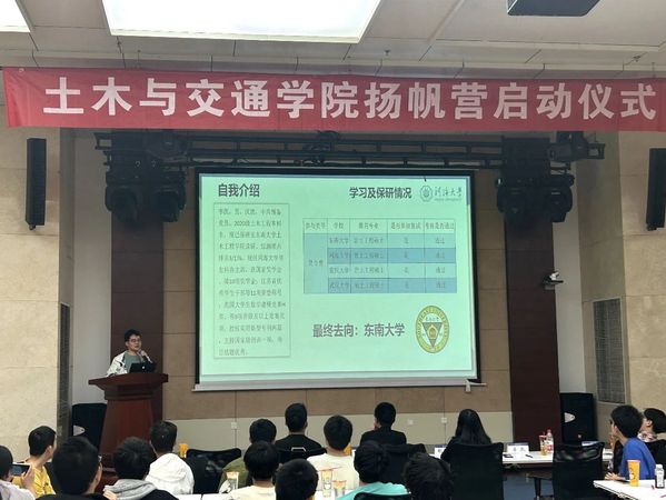 随后,刘睿阳、李凯、夏宇轩和董跃跃四位2020级、2021级优秀本科生分享了他们的学习心得和经验。刘睿阳分享了参与“挑战杯”和“互联网+”竞赛的经历,鼓励同学们积极参与竞赛活动,注重创新能力的培养;李凯讲述了自己在东南大学夏令营的所见所闻,强调了学习成绩和科研能力的重要性;夏宇轩主要对“美国土木工程师学会国际学生组织ok138cn太阳集团分会”(ASCE-ISG)的学科竞赛以及分会活动做了详细的介绍,并欢迎同学们积极加入ASCE-ISGok138cn太阳集团分会;董跃跃则分享了学习方法和保研经验,鼓励大家有梦想、有行动,追求卓越。