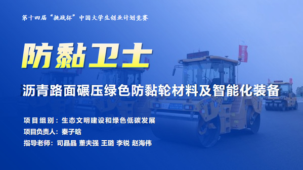 在司晶晶副教授、董夫强副教授、王璐老师、李锐教授、赵海伟老师的悉心指导下,我院学子针对沥青路面传统碾压工艺中难以压实、污染路面、资源浪费等诸多问题,从材料、制备工艺、配套设备改造等方面展开研究。以高分子凝胶材料为技术突破,开发一种热/力智能响应的环保型沥青铺面碾压防黏轮材料。在原有压路机喷洒设备基础上,成功改造与防黏剂材料配套的智能辊涂喷洒装备,适用于自动驾驶无人碾压技术,实现沥青铺面碾压不间断施工。