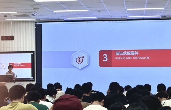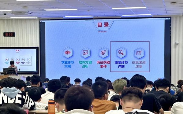 接着,陈鹏老师从学业环节大观、培养方案透析、两证获取要件、重要环节讲解和信息渠道述要这五大方面为同学们深度解析毕业学分相关内容。