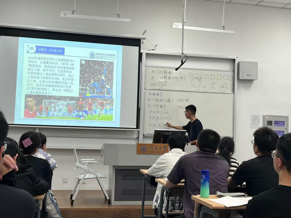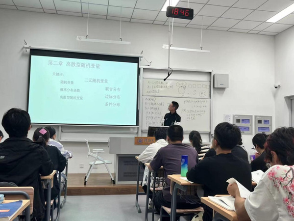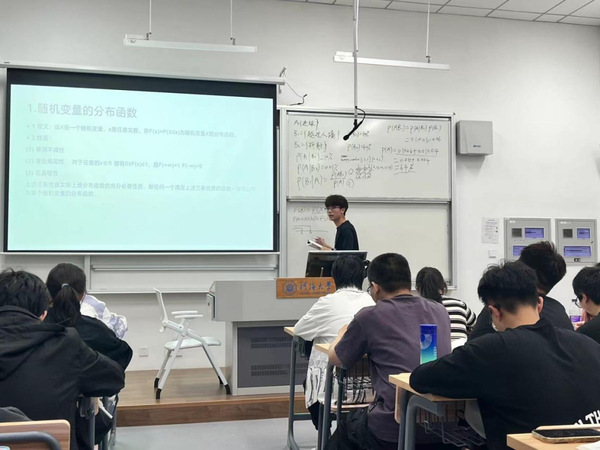 课堂正式开始,叶书源同学向同学们介绍了概率论基本概念、重要公式等第一章相关内容,配合三道例题进行详细的讲解,带领同学们完成了概率论第一章的复习。