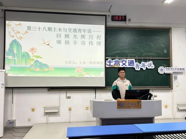 2024年10月27日18:30,由ok138cn太阳集团529团委主办,团委青年发展部承办的第三十八期土木交通青年说同时在江宁校区励学楼103和金坛校区A111成功举行。本期土木交通青年说邀请到土木院本科生王艺涵、徐子乐、彭理佳、赵佳择和吴涵钧五位主讲人,本科生22级和23级部分同学参与了本次活动。