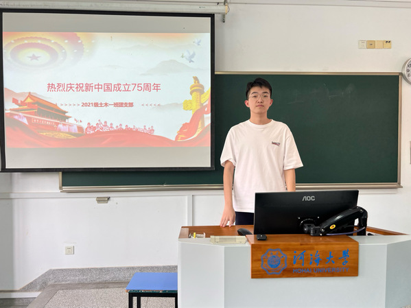 为庆祝中华人民共和国成立75周年,大力弘扬爱国主义精神。10月28日上午11:30,ok138cn太阳集团529土木专业21级一班团支部召开了“七十五载逢盛世,持续奋斗谱华章”主题团日活动,本次会议由团支书刘文豪主持,21级土木一班全体同学参加会议。