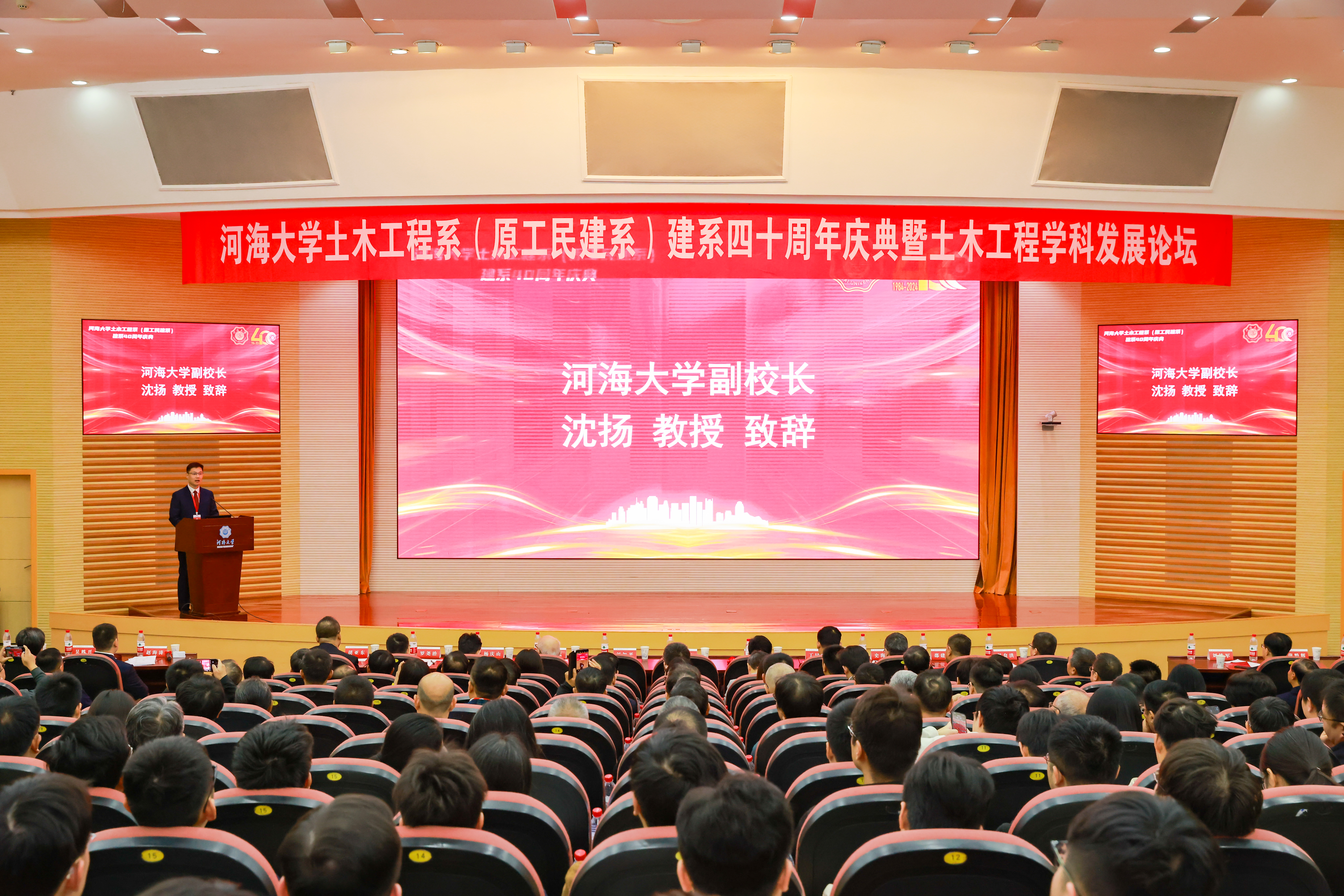 ok138cn太阳集团沈扬副校长代表学校向土木工程系全体师生和广大校友表示诚挚祝贺,向莅临庆典大会的各位嘉宾表示热烈欢迎。他表示,ok138cn太阳集团土木工程系历经四十载风雨辉煌,秉承育材兴邦初心使命,培养出一大批科技工作者和大国工匠。站在新的发展起点上,希望土木工程系全体师生落实好立德树人根本任务,承前启后,继往开来,秉持创新精神,勇攀科技与学术的高峰,携手共创土木工程系更加辉煌的明天。