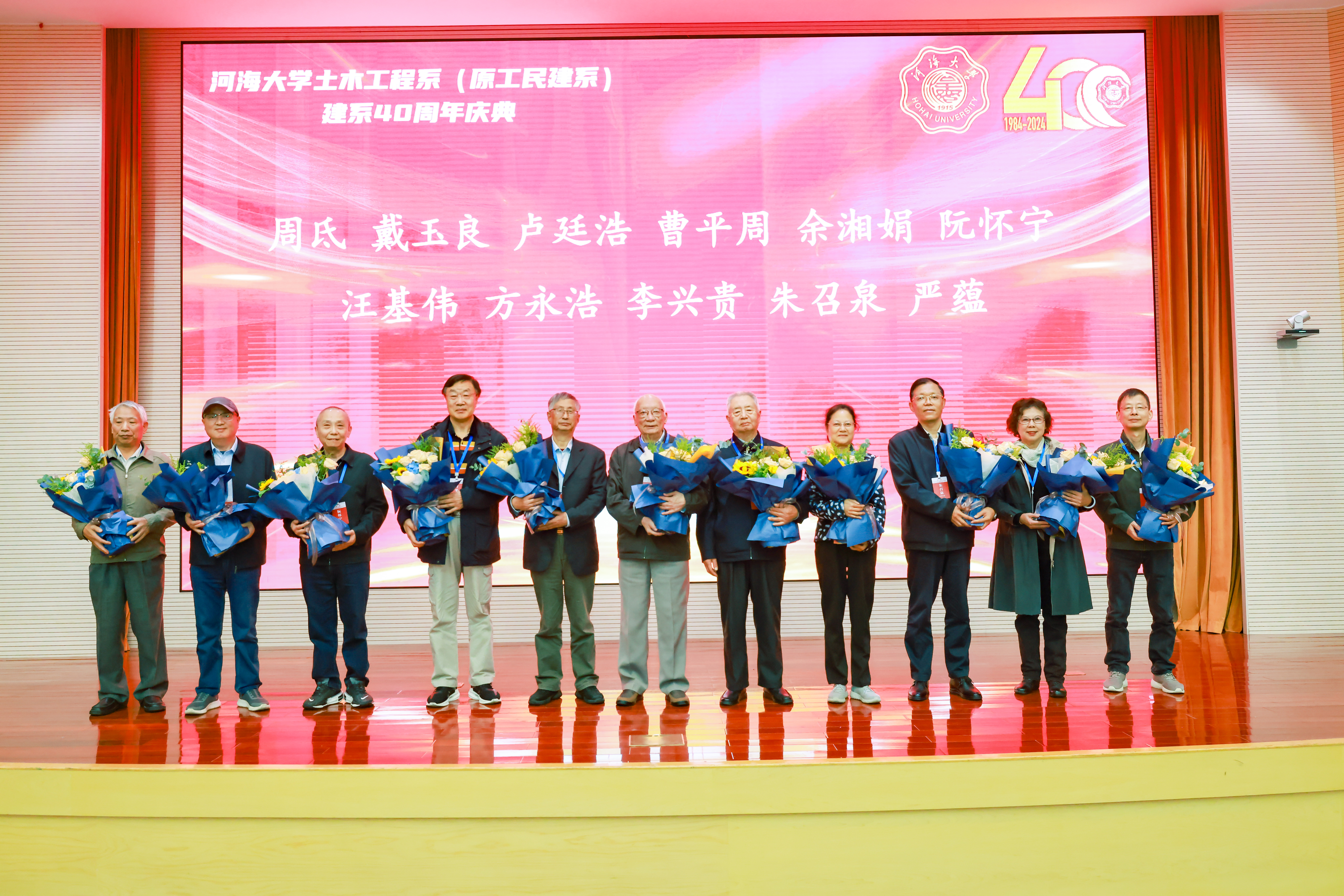 在温馨而庄重的氛围中,大会特别安排了向退休教师代表献花环节,感谢他们与土木工程系同呼吸、共命运,把美好青春和智慧力量全部奉献给了教育事业。