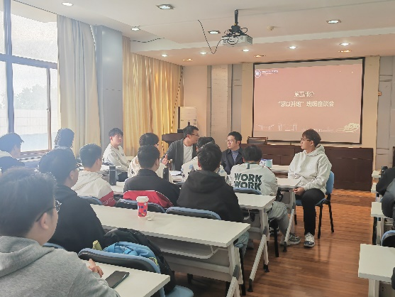 仪式结束后,赵海伟副书记与同学们进行了座谈,就学习、生活和职业规划等话题进行了深入交流。他结合实际情况,为同学们答疑解惑,并提出中肯建议。他鼓励同学们将个人理想与实践相结合,勇敢走向基层,在锻炼中成长,在奉献中实现个人价值与社会贡献的统一。