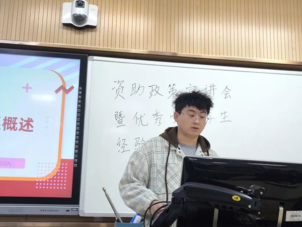 活动伊始,文少康同学总体梳理了高校家庭经济困难学生资助政策,重点介绍了国家奖学金、国家励志奖学金、国家助学金等各类奖助学金的评选条件和评定标准,并鼓励符合条件的同学积极申请。在此基础上,文少康同学进行学习经验分享,引导同学们树立明确的学习目标,做好阶段性规划,充分利用好各类学习资源,争取在各科考试中取得优异成绩。