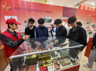 活动开始,志愿者们在退役老兵童老师带领下,参观了红色养老服务站的老物件展柜与复原战地场景。童老师结合自身军旅经历,为志愿者们讲解相关历史,传递爱国情怀,寄语大家热爱祖国、抵制崇洋媚外、支持民族品牌。参观中,志愿者们认真聆听、记录。