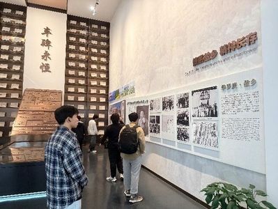 在“领导民主运动”展区,同学们驻足于历史照片与文献前,回溯中共代表团团结各界力量、推动民主进步的实践,更明晰了新时代青年的责任担当。