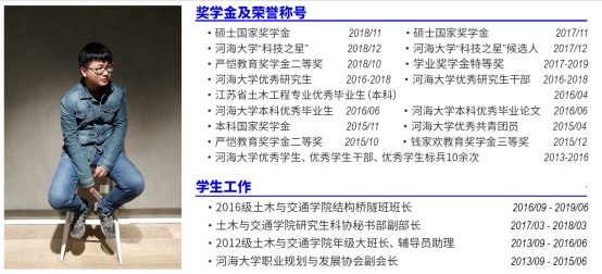 (11)江苏省土木工程专业优秀毕业生(研究生)1人(2019)